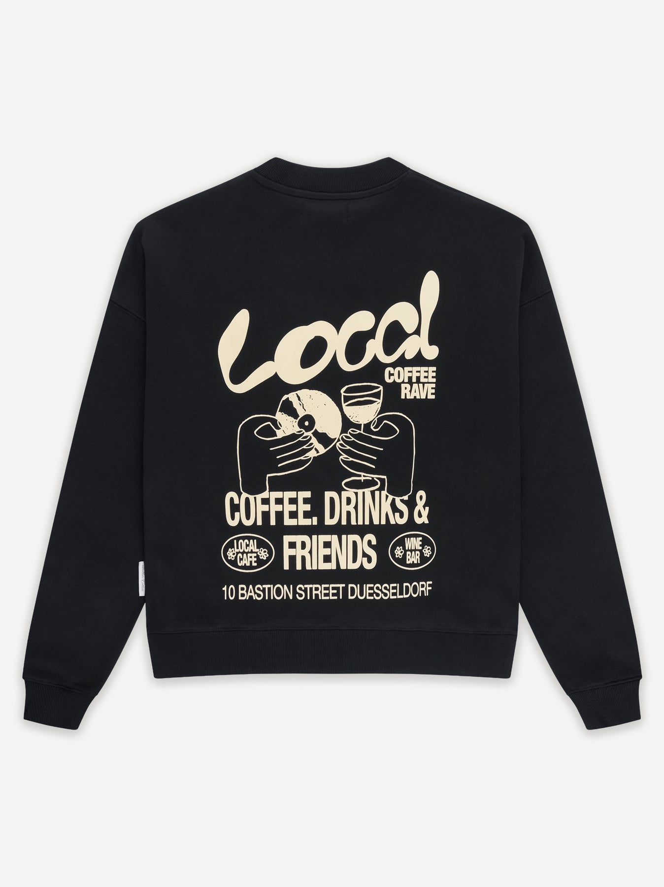 The Local Rave Sweatshirt translates community spirit into a clean graphic statement. The large back print reflects coffee culture, shared moments and everyday connection — expressive yet understated. An oversized silhouette combined with heavyweight sweat gives the piece structure and comfort.