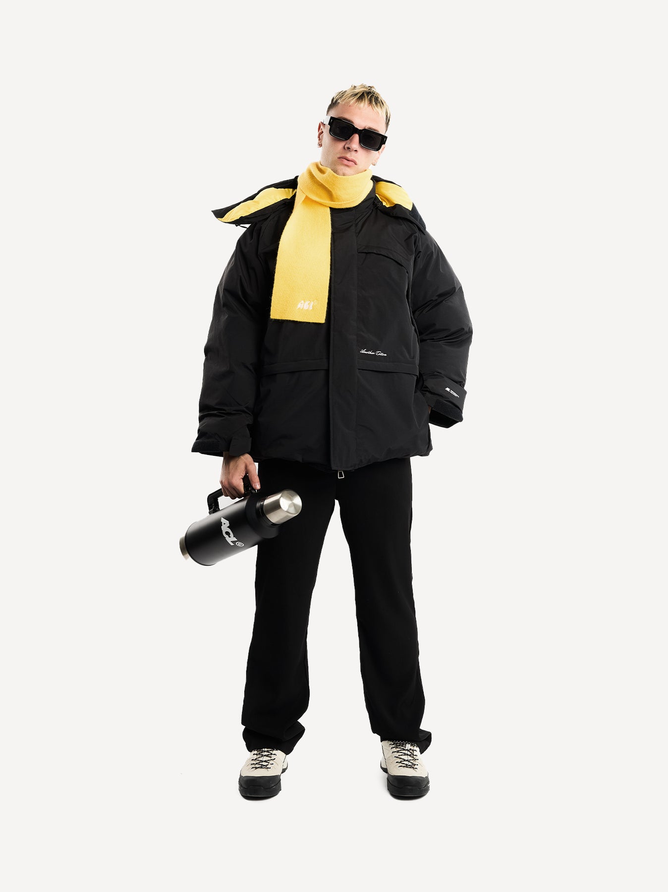 The fit is oversized by design – made for layering over hoodies, knitwear, or technical pieces. Finished with subtle branding, functional storage, and a contrasting insulated lining.